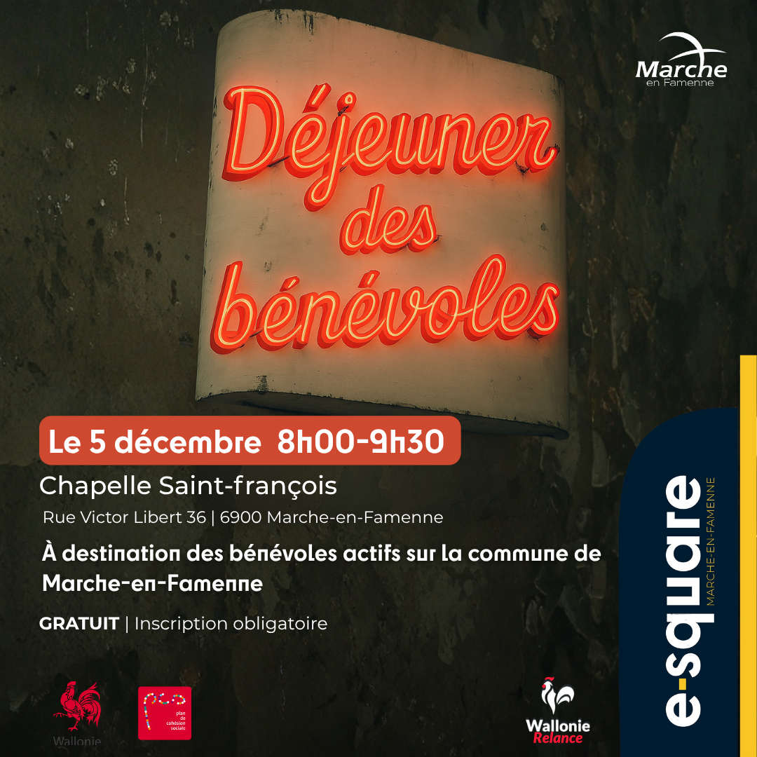 pcs@marche.be ou via ce lien: https://passpass.be/events/749/dejeuner-des-benevoles?t=162k